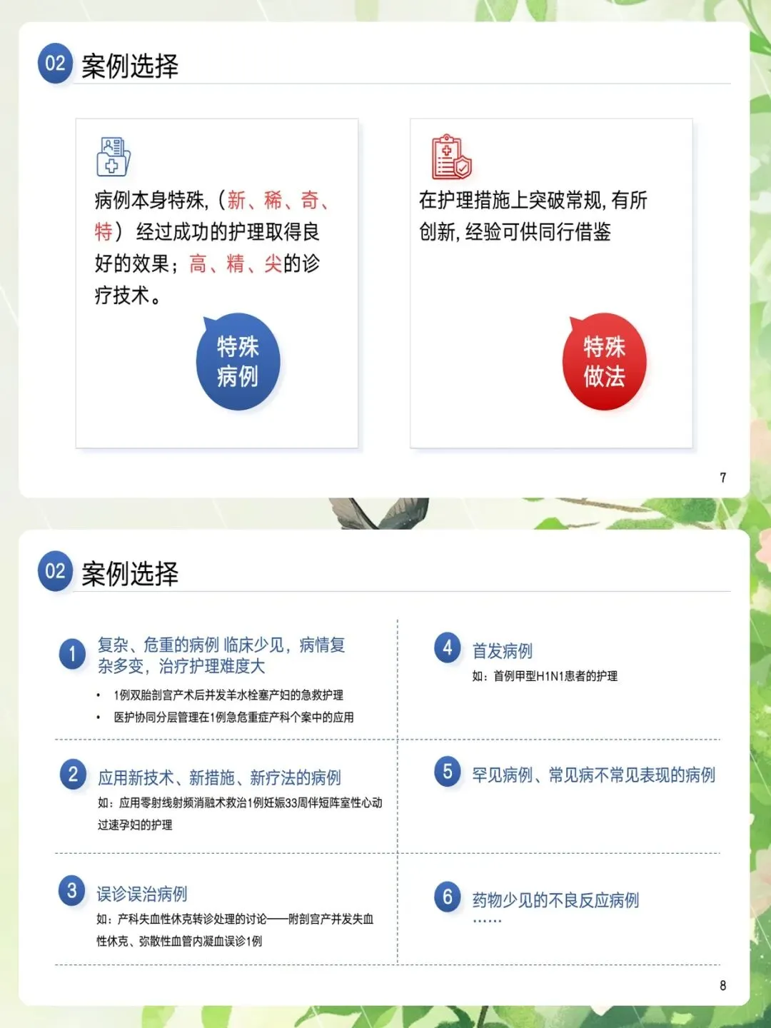 那么,什么样的病例适合写成个案护理呢?我总结了三个关键词:新、稀、奇、特。比如罕见病、新技术应用、突破常规的护理措施,或者虽常见但护理上有创新、值得同行借鉴的病例。