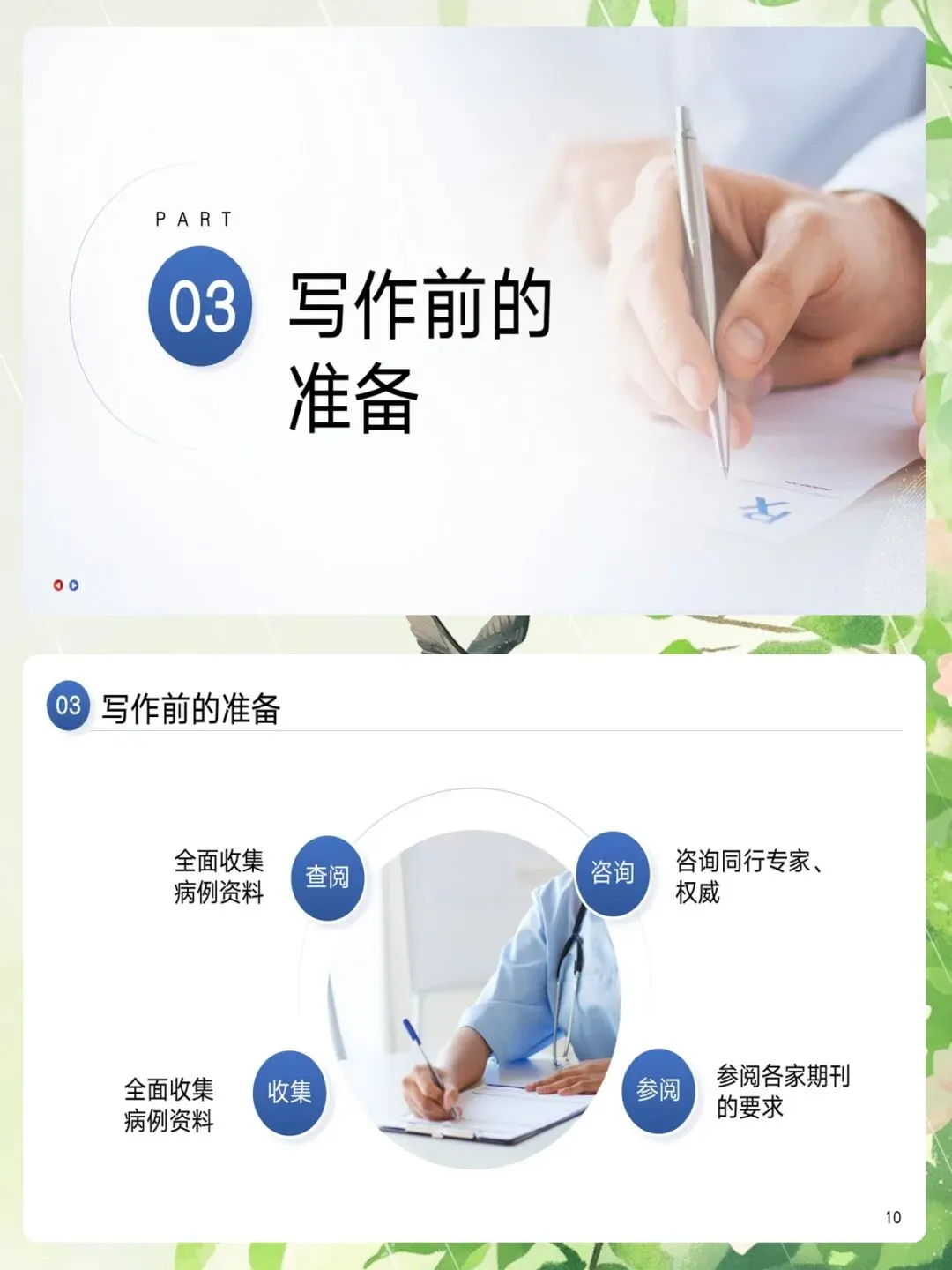 在写作之前,我们要做好充分准备:全面收集病例资料,查阅相关文献,咨询专家意见,并了解目标期刊的投稿要求。