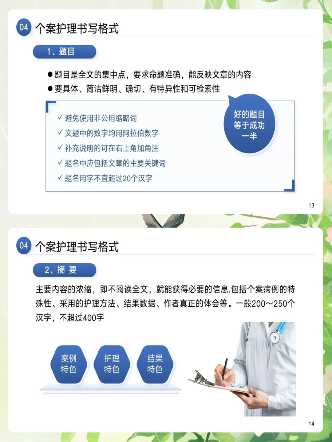 最后,个案护理不是简单记录,而是对护理实践的深入反思和总结。希望大家在今后的写作中,能用心选材、精心构思,写出有价值、有温度的优秀个案护理文章。