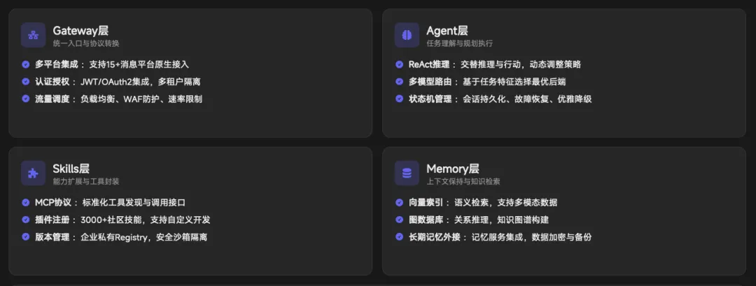 今天用的RAG、模型、工具,未来有更好的方案,可以直接平滑替换,不影响主框架、不破坏现有流程;业务扩张、系统新增、平台升级,只加组件、不换骨架,保护今天的每一分技术投入。