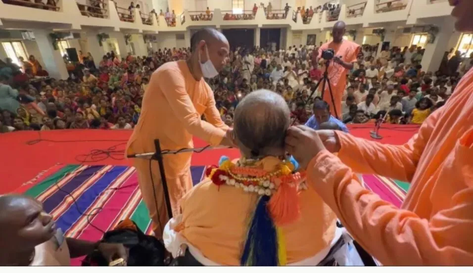 卡利年代(Kali-yuga)是充满缺陷的海洋,但它有一个优点——仅仅通过唱诵奎师那的圣名和荣耀(将获得拯救)。我分享了《卡利•桑塔茹阿纳•奥义书》(Kali-santāraṇa Upaniṣad)中的逍遥时光:纳茹阿达•牟尼询问主布茹阿玛如何免受卡利年代的影响,主布茹阿玛揭示了哈瑞•奎师那•玛哈•曼绰。