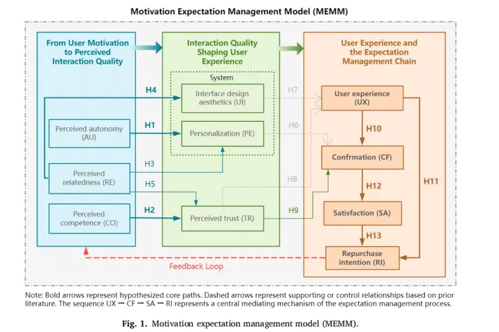 整合ECT与HCI:将个性化、界面美学、信任纳入期望确认模型,揭示“体验→确认→满意→复购”的完整链条。