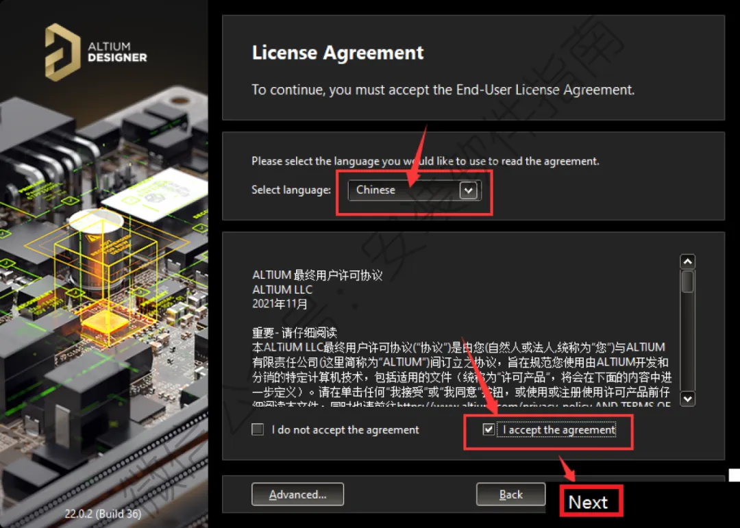 5.选择语言,然后点I accerp,然后点Next