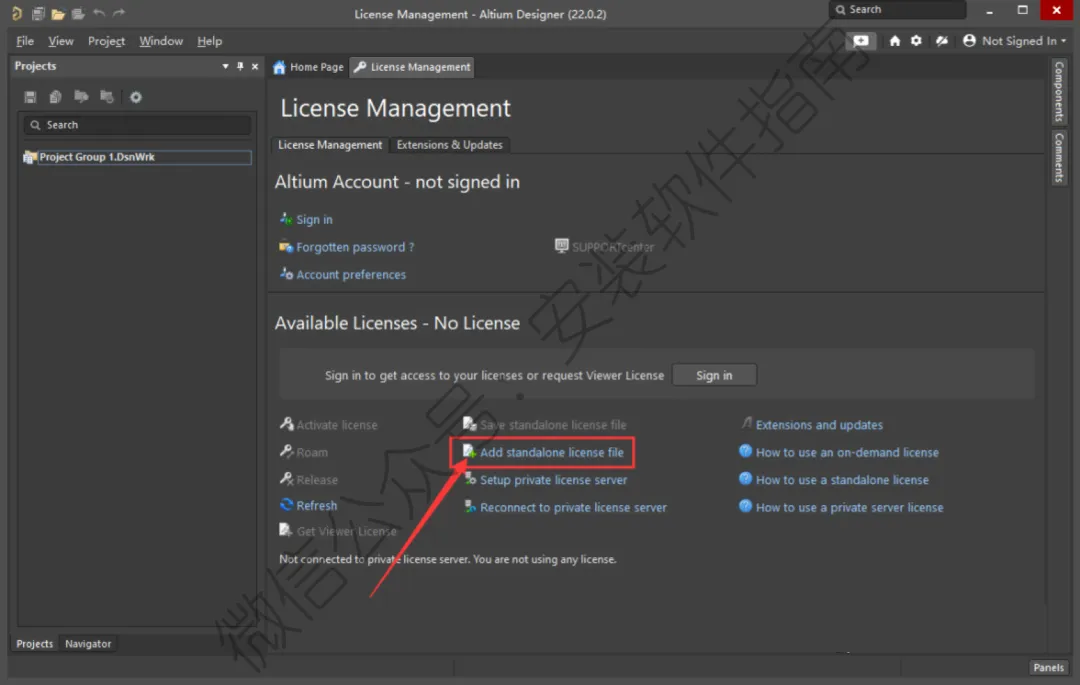 17、点击《Add standalone license file》添加许可文件