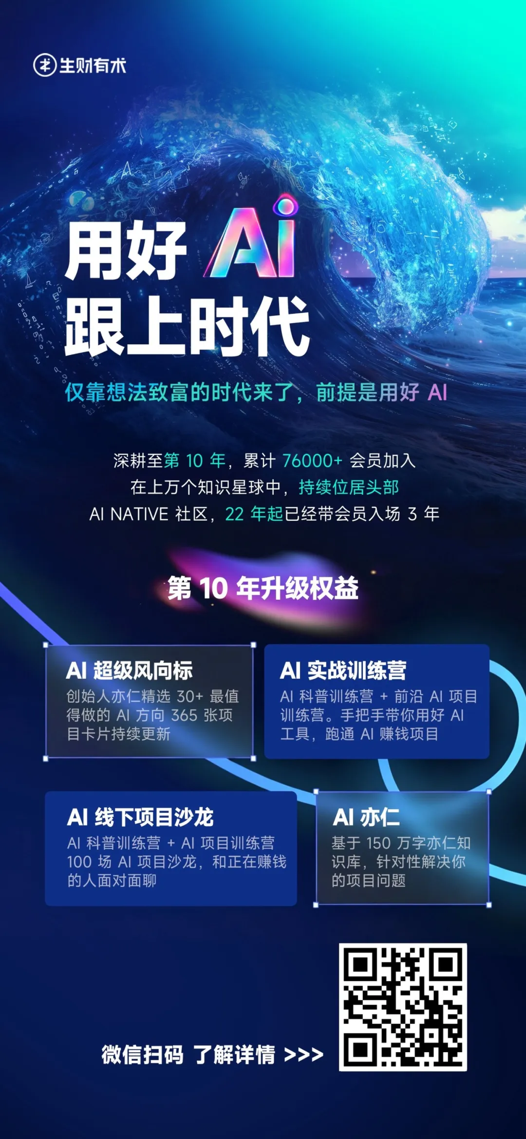 这是已经被验证的超级赚钱机会。海外的付费能力和意愿强,AI 让产品开发成本极速下降。亦仁了解到有圈友团队几个人,抓住机会,一天利润能达到 10 万美金以上。变现基本靠订阅,流量靠 SEO、投放或社交裂变都有成功案例。