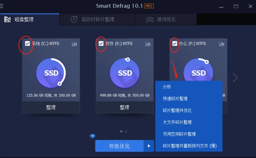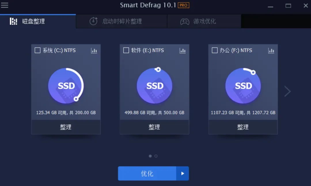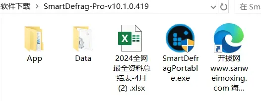 让你的电脑运行更加流畅和快速。你知道吗,当你使用电脑的时候,你的文件会被分成很多小块,散落在磁盘上的各个角落,这就是磁盘碎片。磁盘碎片会让你的电脑变得慢慢慢慢慢……你可能经常遇到这样的情况,打开电脑要等半天,打开文件要等半天,打开游戏要等半天……甚至还会出现卡顿、死机、蓝屏等恐怖现象!这些都是磁盘碎片惹的祸!如果你不及时处理磁盘碎片,你的电脑就会越来越慢,越来越差,越来越难用!但是别担心,有了Smart Defrag,你就可以轻松地解决这些问题!Smart Defrag可以自动地、智能地、高效地对磁盘进行碎片整理,让你的文件重新排列成一个整齐的队列,让你的磁盘读写速度大大提升,让你的电脑恢复原来的速度和性能!最新版:智能磁盘碎片整理工具IObit Smart Defrag Pro v11.3.0.476 特别版通过IObit Smart Defrag,用户能够轻松实现磁盘碎片的智能整理,最大限度地减少读写时间,提高硬盘的响应速度。这有助于系统更加迅速地加载应用程序和文件,提升整体运行效率。特别是在处理系统文件碎片时,工具能够对页面文件、休眠文件、MFT表等进行有效整理,使系统资源的调配更加合理,为用户创造更加流畅的计算环境。除了对系统文件的优化,IObit Smart Defrag还提供了专门的游戏优化功能。通过整理游戏文件数据,工具能够提升游戏的加载速度和运行性能,为玩家提供更好的游戏体验。smartdefrag中文版,smartdefrag破解版- 破解专业版,第三方绿色便携版单文件- 去每次整理碎片完成后的推广软件弹窗- 去优化完应用App后跳出推广软件弹窗- 去界面无用按钮:幸运大转盘按钮、操作中心栏- 去主界面无用项:底部管理许可密钥,分享给好友提示- 取消创建开机启动、自动升级、自动分析、计划任务项- 去效验,脱离删除升级程序、恶意程序、多国语言等文件- 去菜单无用项:反馈, 检查更新, 用户手册, 技术支持, 在线- 单文件预设配置:默认为中文、不最小化到托盘关闭退出1、在本文末尾,下载软件后,解压,即可得到如下文件和文件夹2、双击“SmartDefragPortable.exe”即可打开(绿色版免安装版)该软件可能没几天就会被/删/除了,所以,需要该软件的,赶紧下载,不要等消失了,再来找我哈!IObit Smart Defrag下载地址