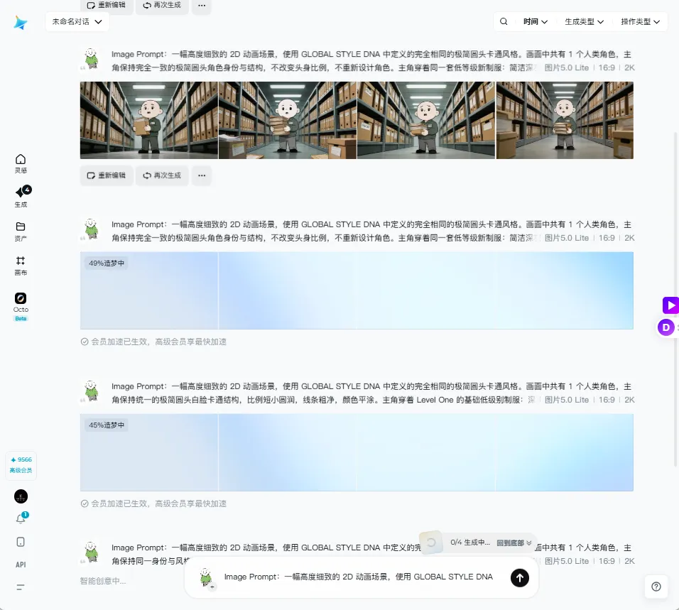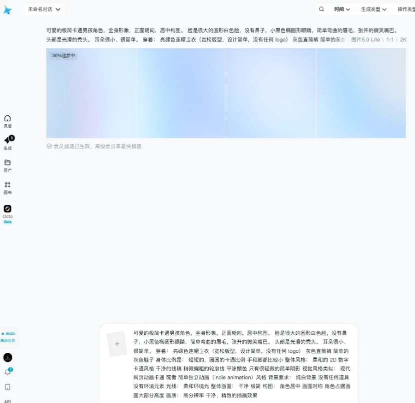 点击生成。等待的同时可以复制第二段提示词粘贴进来生成,操作方式相同。