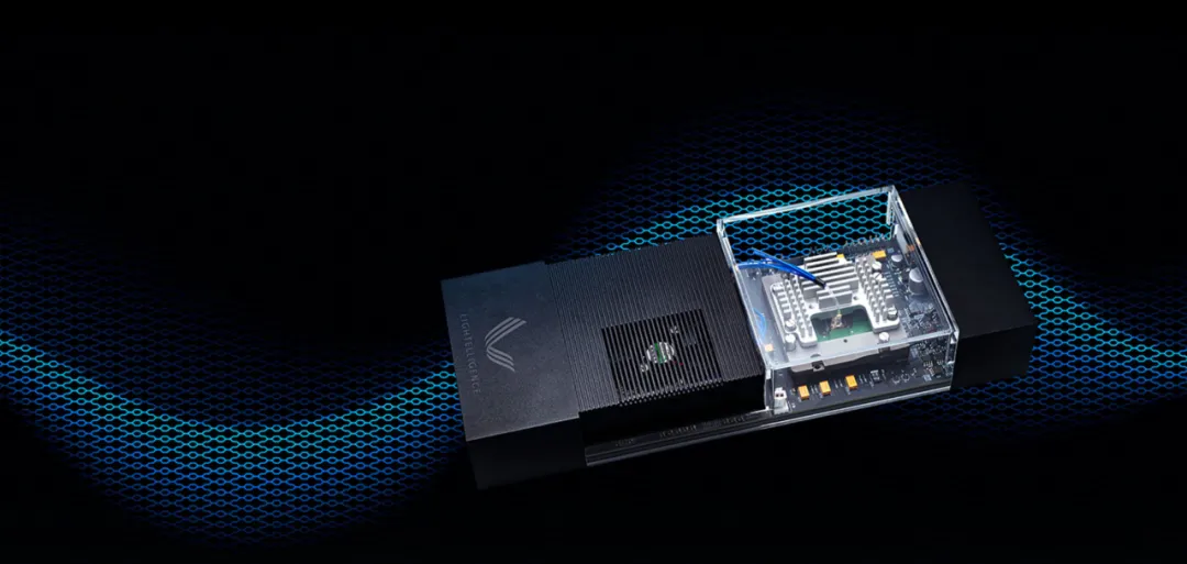 在光计算领域,曦智科技利用光子进行矩阵乘法等线性运算,突破电芯片的算力极限。其旗舰产品PACE 2(曦智天枢,见下图)已集成超过四万个光子器件,支持128×128矩阵运算,在64×64矩阵运算中,可将计算时间从微秒级压缩至3纳秒,比高端GPU快两个数量级,处理矩阵乘法的能耗仅为英伟达A100的1/18,而矩阵乘法占AI大模型工作负载的70%以上。这种底层物理特性带来的优势,是英伟达靠2nm、1.6nm制程永远无法实现的突破。
