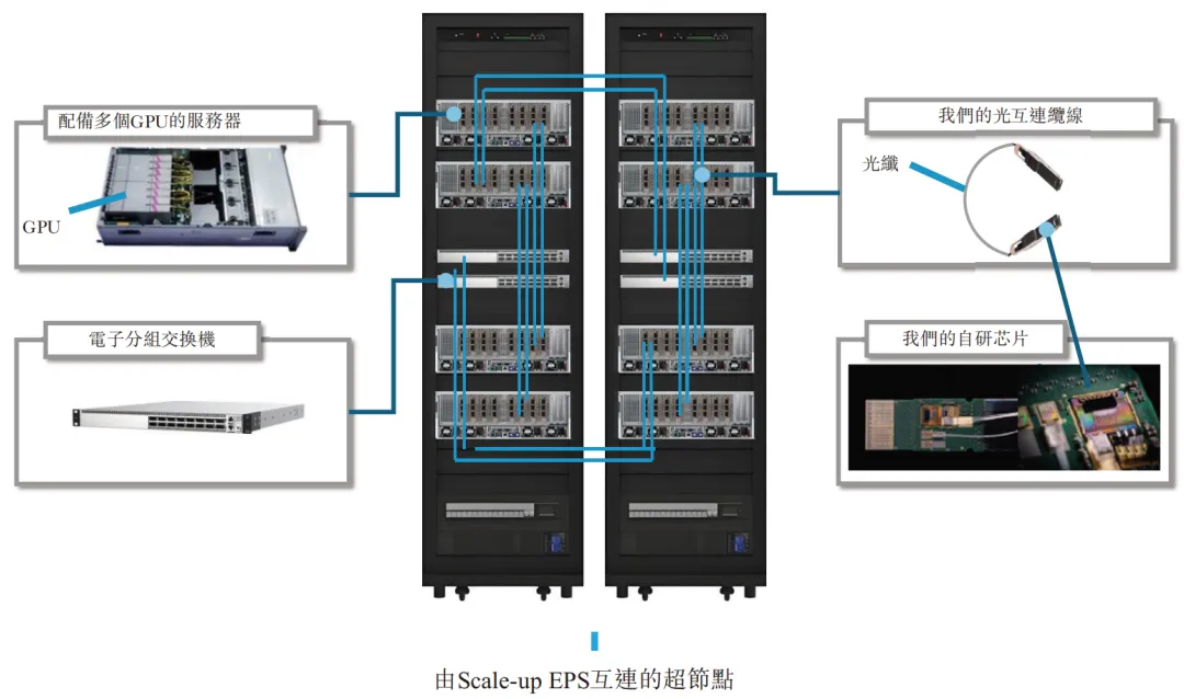 同时,公司的Scale-out解决方案则专注于将多个独立超节点连接成大型分布式计算集群,负责“计算域之间”及“域与外存/公网”的通信。
