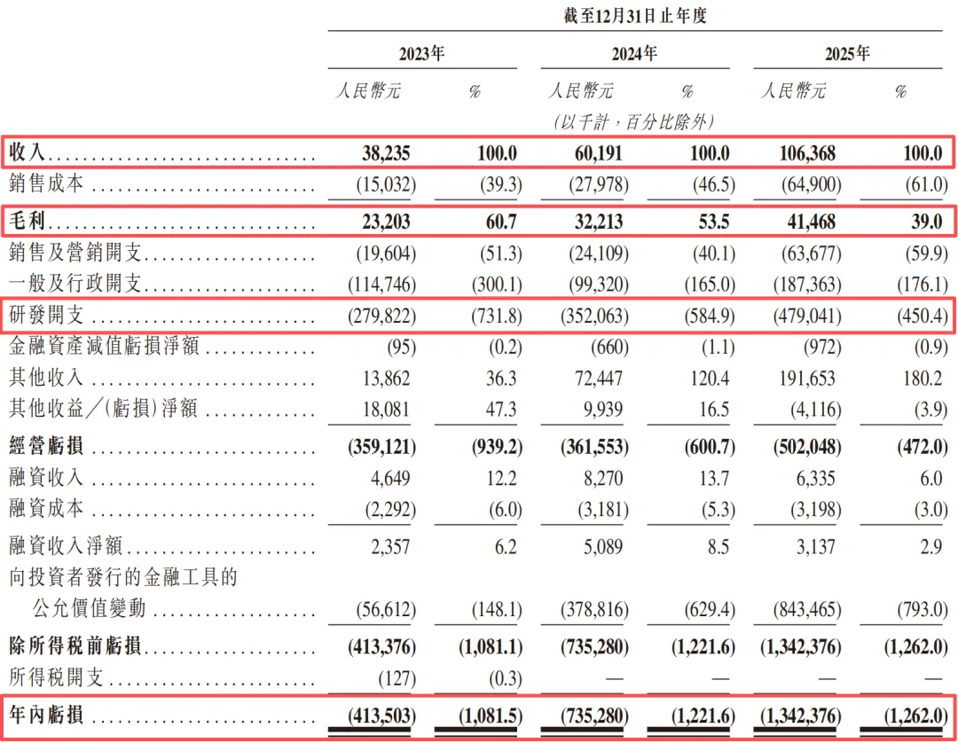 收入端呈现清晰的加速增长趋势,2023年至2025年营业收入分别为3823.5万元、5990万元、1.06亿元,三年复合增长率达66.9%,2025年同比增速进一步提升至76.7%,突破亿元关口。