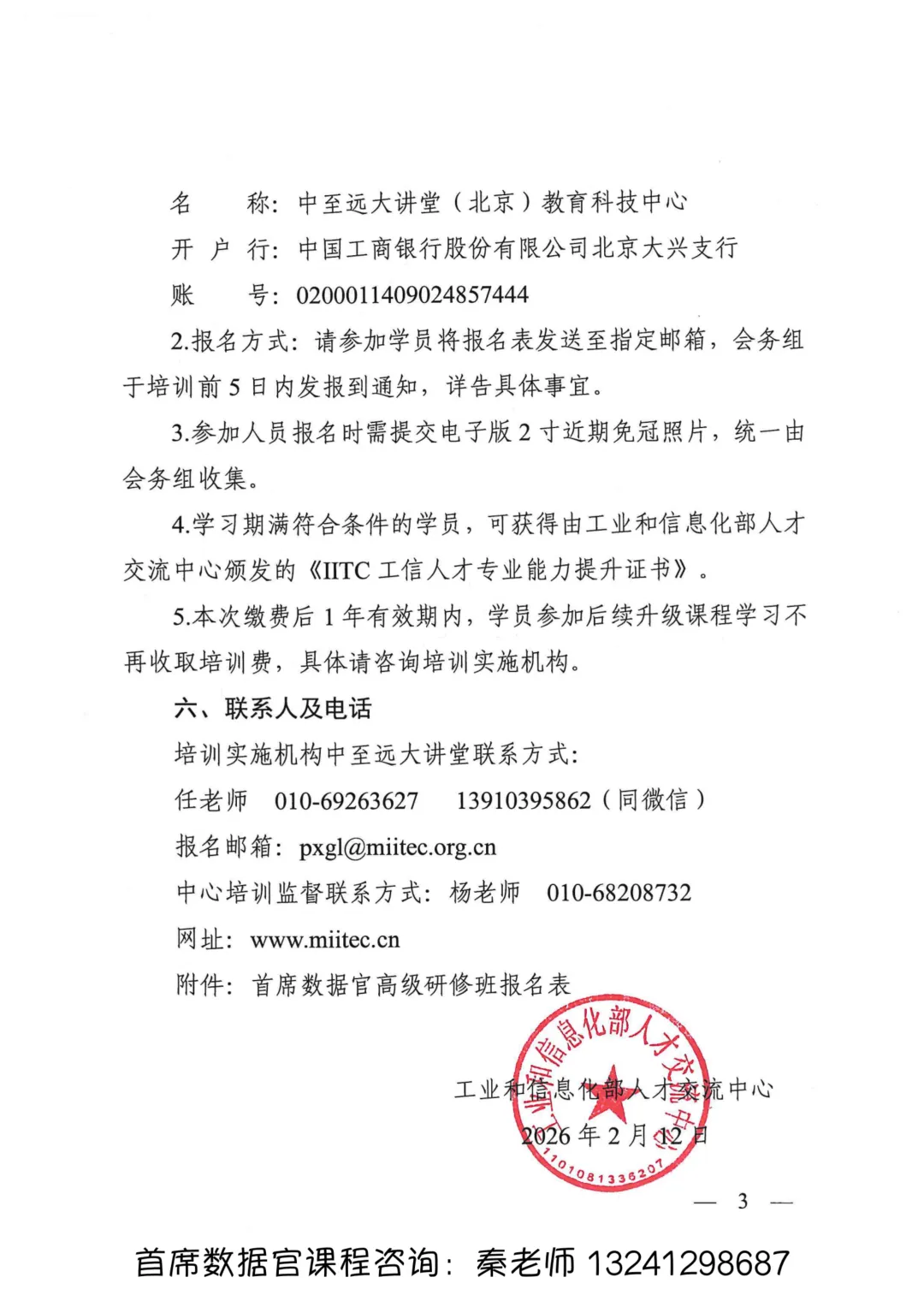 注:需单独报名参加由工信部人才交流中心授权的评价机构线上测评,评测通过后取得《IITC工信人才岗位能力评价证书》