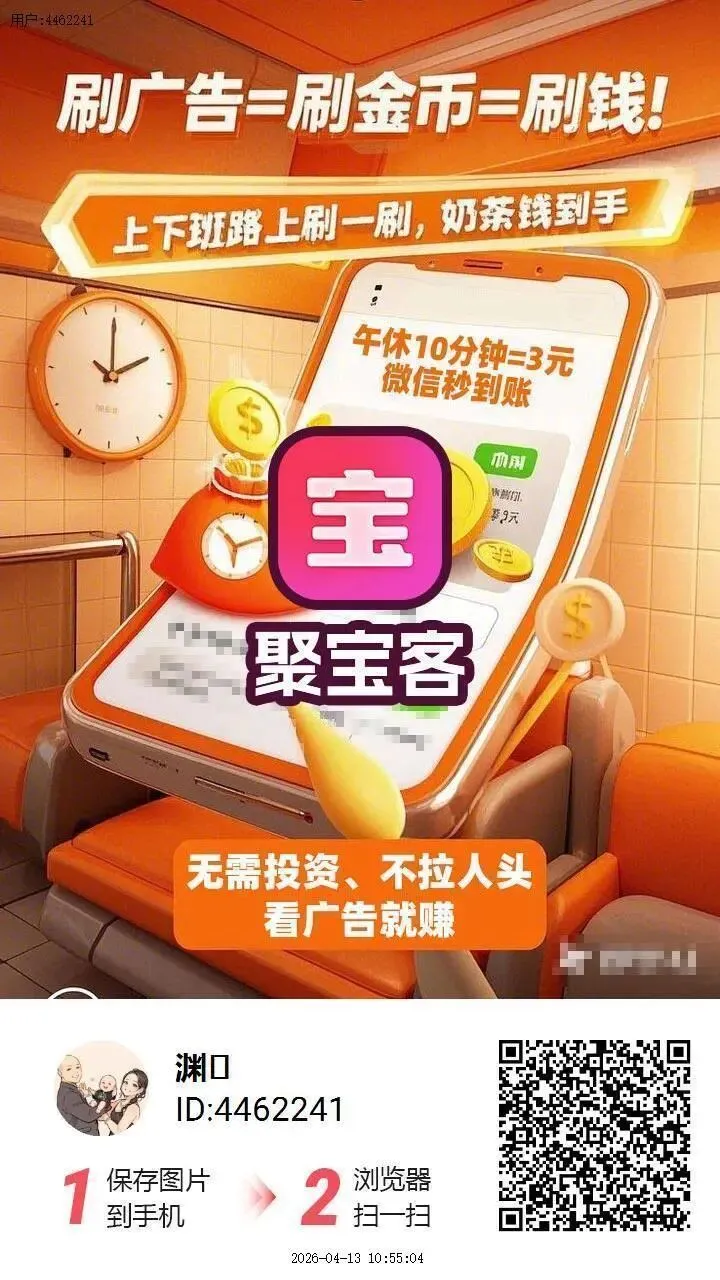 上班族、学生党碎片时间别浪费!聚宝客推出“刷广告赚现金”活动,上下班会路上刷一刷,奶茶钱轻松到手。午休10分钟就能赚3元,微信秒到账,无需投资、不拉人头,纯看广告就能挣钱,操作简单易上手,积少成多,零花钱越赚越多。