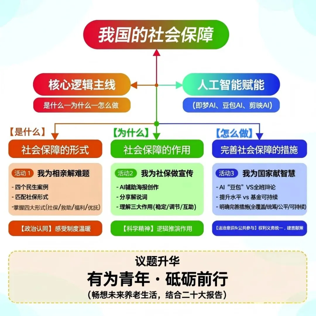 在这一战场上,学生与AI的每一次“提问—反驳—再回应”的循环博弈,都迫使他们跳出“非黑即白”的简单判断。他们不得不深入思考保障水平与经济发展水平的适配性、代际公平与基金可持续的平衡点等深层问题,最终在观点碰撞中建构起既要尽力而为,又要量力而行的辩证认知,从而真正实现从知识记忆到思维进阶的跨越。