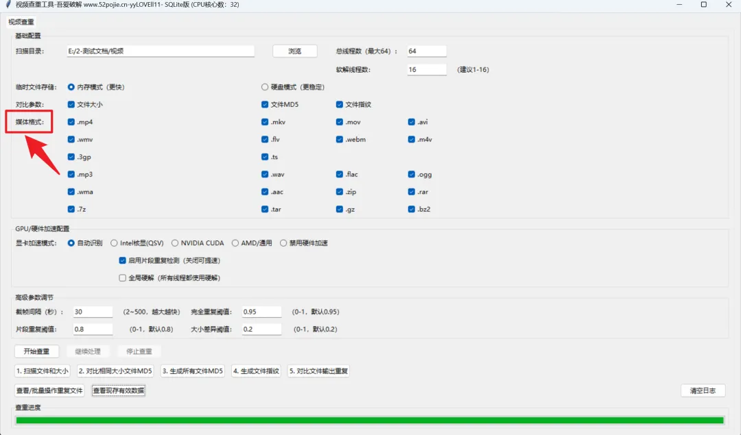 若想让识别更精准,可自定义勾选需要检测的视频格式,未勾选的格式将被跳过,既能提升准确率,也能加快扫描速度。