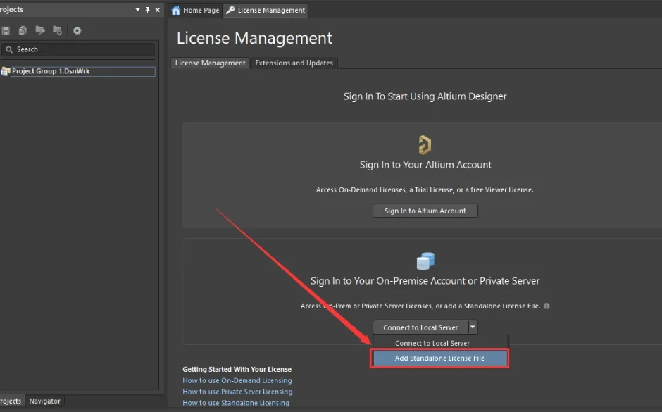 16. 下拉选择【Add Standalone License File】。