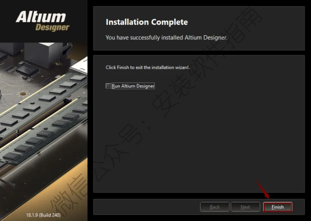 8、把“Run Altium Designer”前面的勾去掉,点击“Finish”。