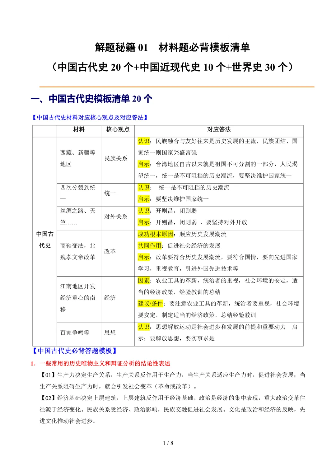 今天给大家带来了新中考历史材料分析题必背模板清单(中国古代历20个+中国近代史10个+世界史30个)获取完整电子版请下拉至文末