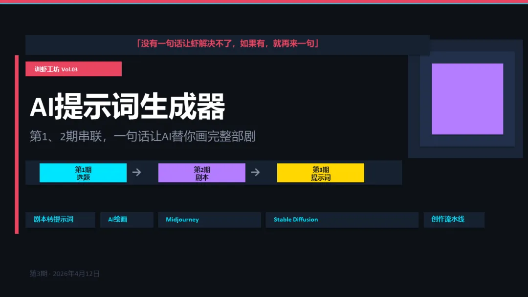 第1期选题 → 第2期剧本 → 第3期提示词,创作流水线,一期接一期。