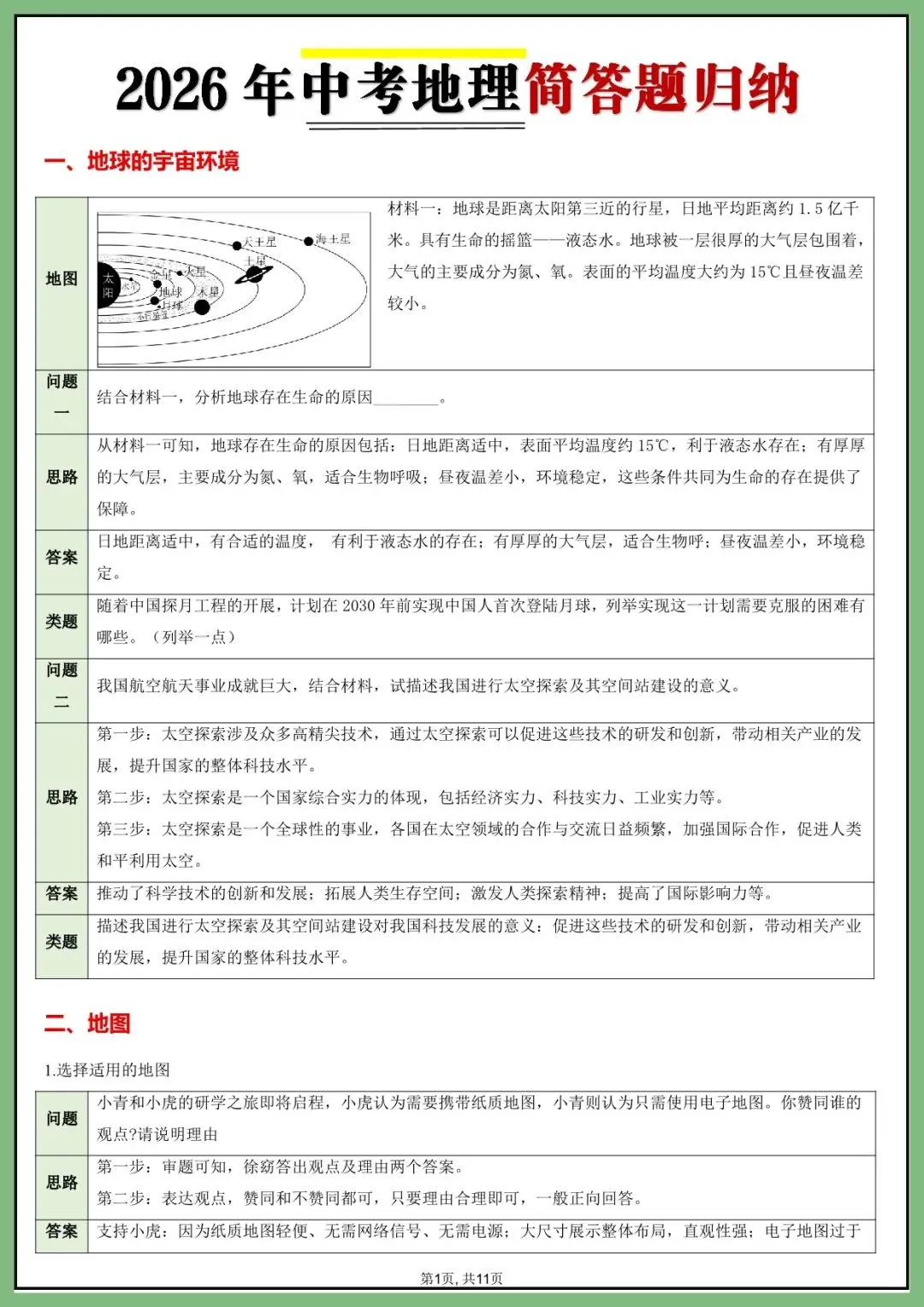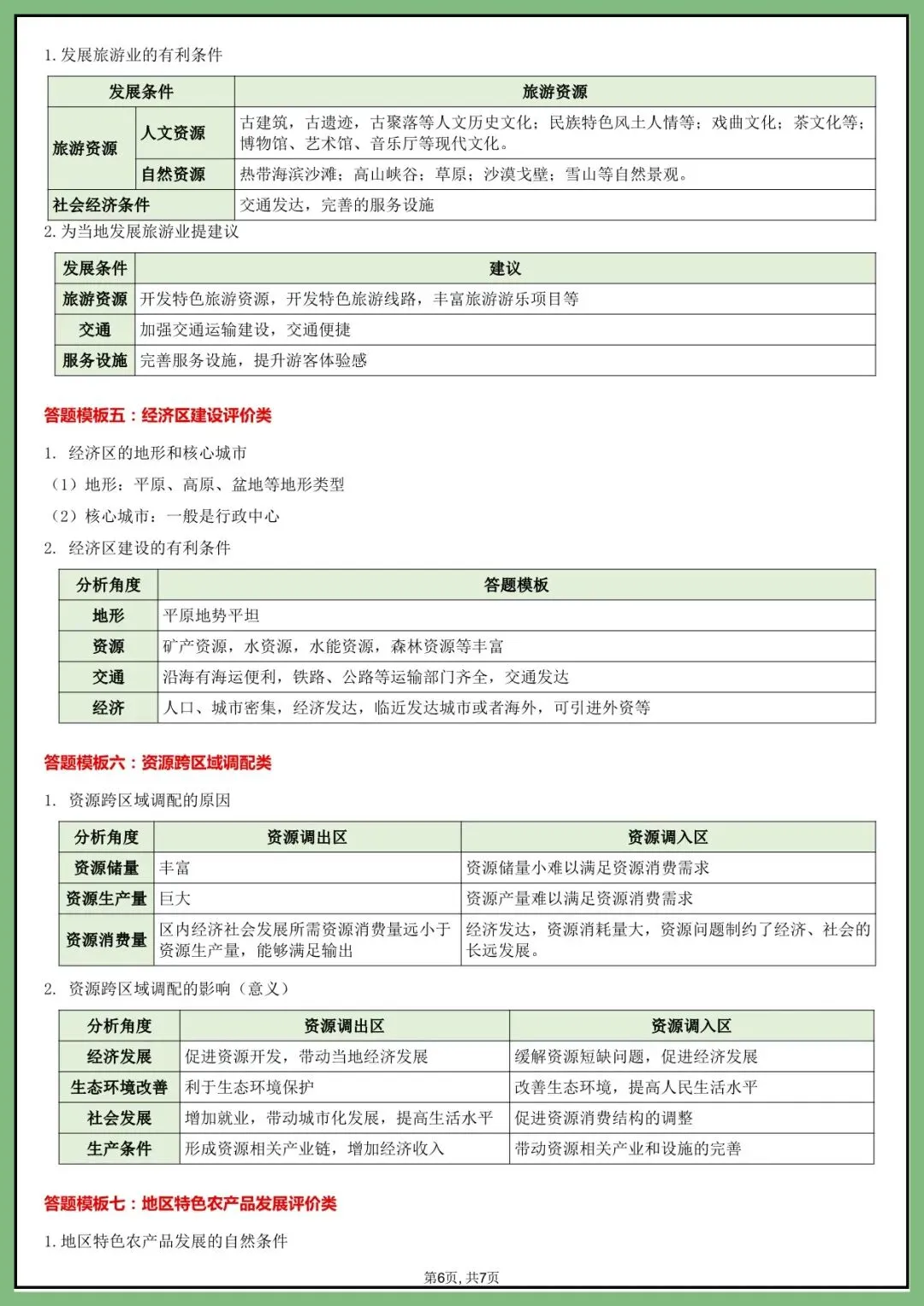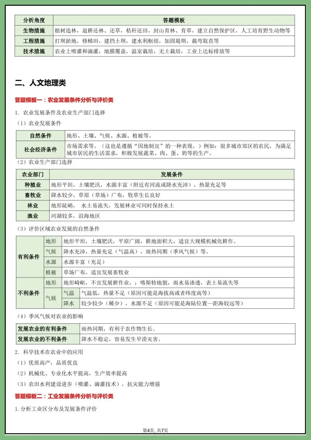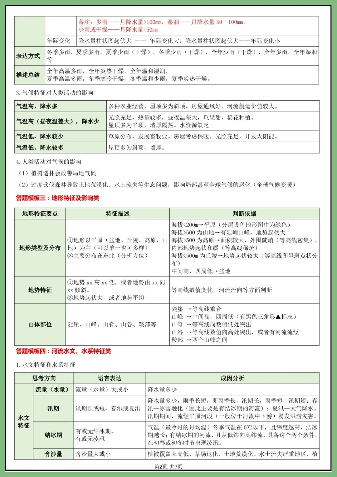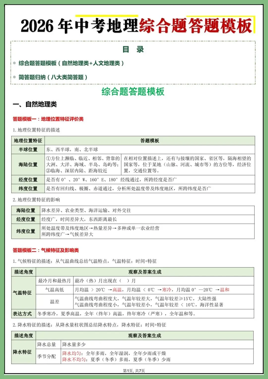 地生会考丨26年中考地理综合题答题模版+简答题归纳(电子版可打印)
