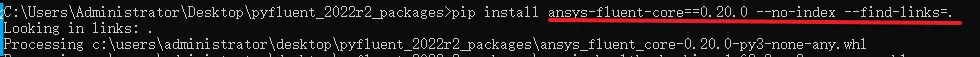 pip install ansys-fluent-core==0.20.0 --no-index --find-links=D:\pyfluent_2022r2_packages