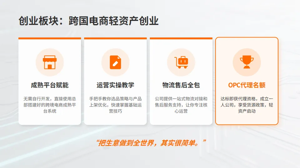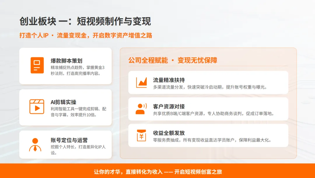 【OPC创业一人公司】 三大成熟创业板块任选主攻方向,教学资料、软件账号、实操素材全部免费提供,助力快速上手变现。