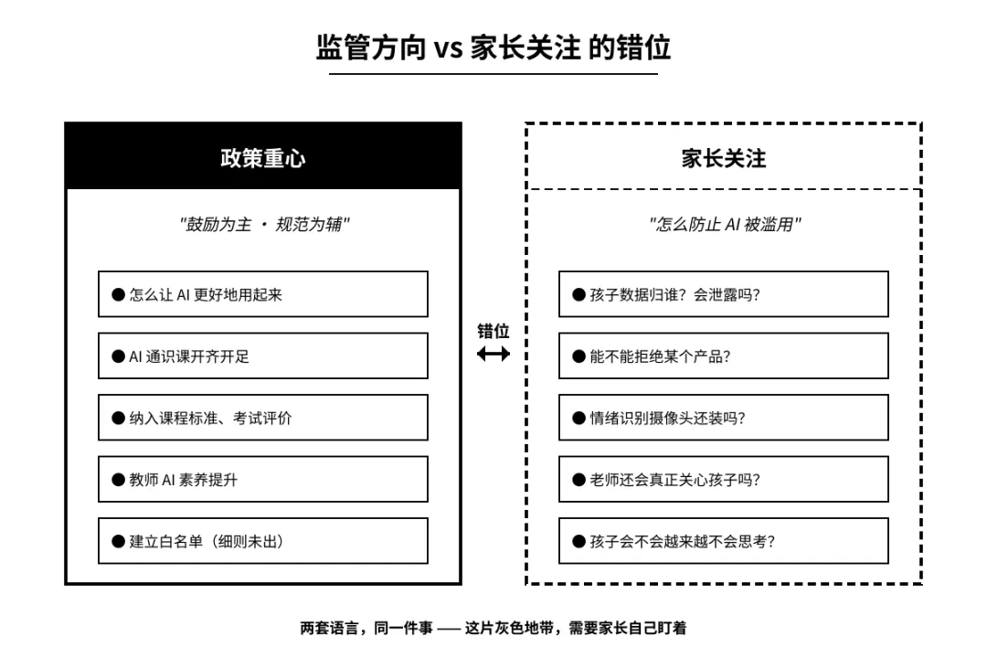 这不是新规造成的,但新规没有明确赋予家长"退出权"。在 AI 深度进校园的节奏下,这个问题会越来越尖锐。