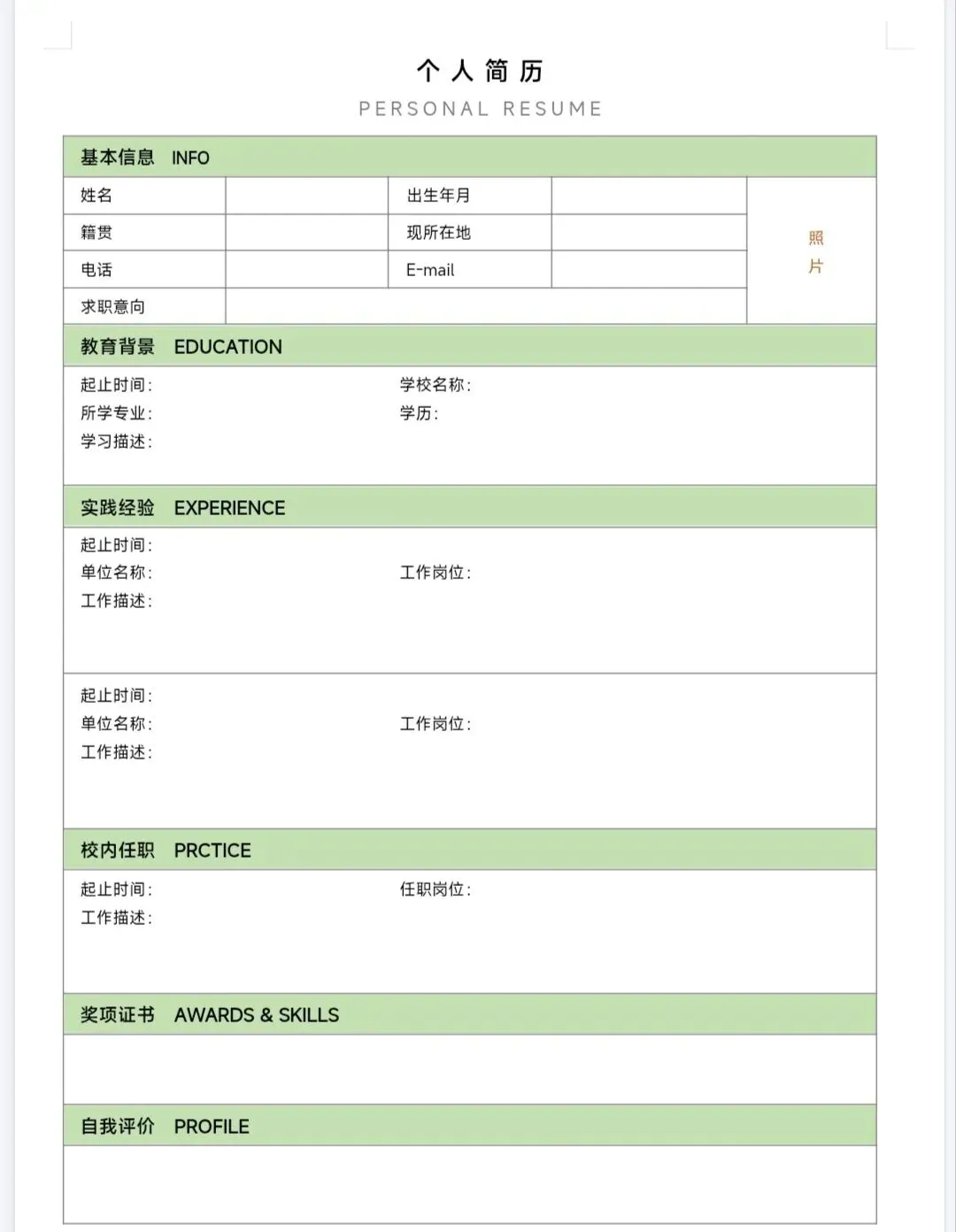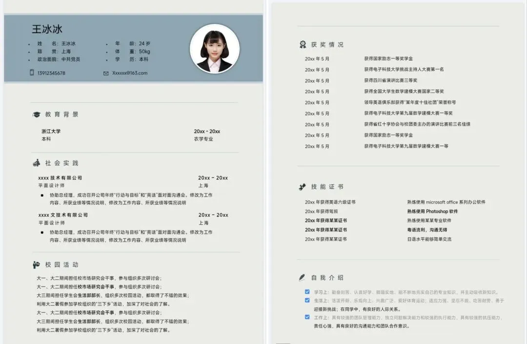 校招、面试、实习、评优通用的大学生简历P模板来啦!