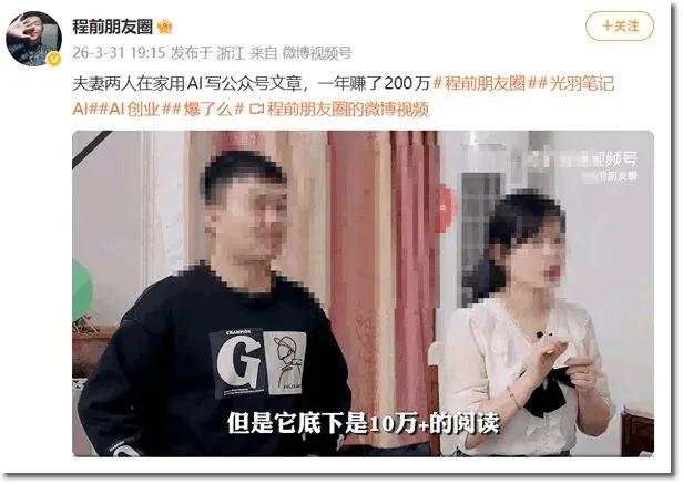 2026年3月末,一则题为“AI写公众号,年赚200万”的访谈视频在社交媒体引发广泛传播。视频中的受访者宣称,其团队利用AI脚本实现了从热点捕捉、内容生成、排版发布的全流程自动化,单号日均收益可达800元。