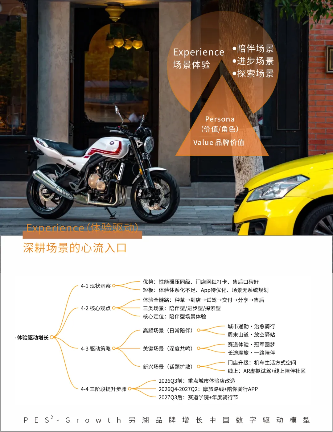 2026年——情感扎根期:围绕“陪你,赢回自己”这一核心定位,系统建设品牌人设(并肩伙伴),强化UGC内容生态,确保消费者从“买情怀”转向“信价值”。主攻“陪伴型场景体验”——城市通勤、下班解压、周末治愈骑行,让机车成为都市人“赢回自己”的生活方式入口。