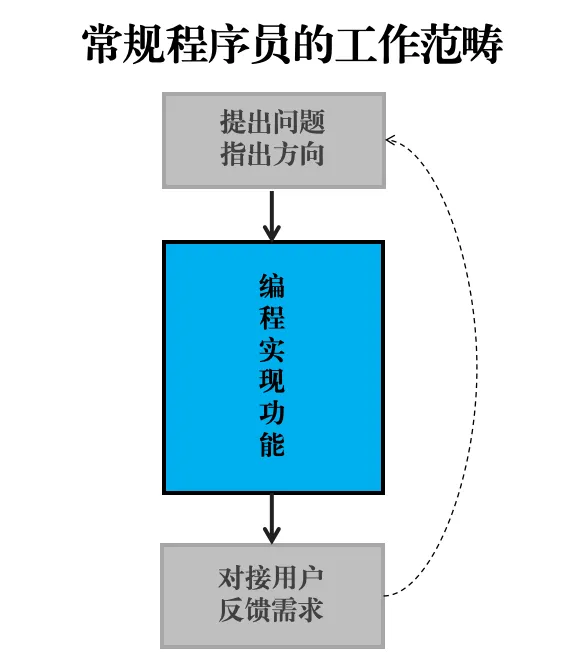 你看,普通程序员的定位,本质上依然是一个 “信息中介”—— 只是把确定的功能需求,通过代码和算法实现出来而已。