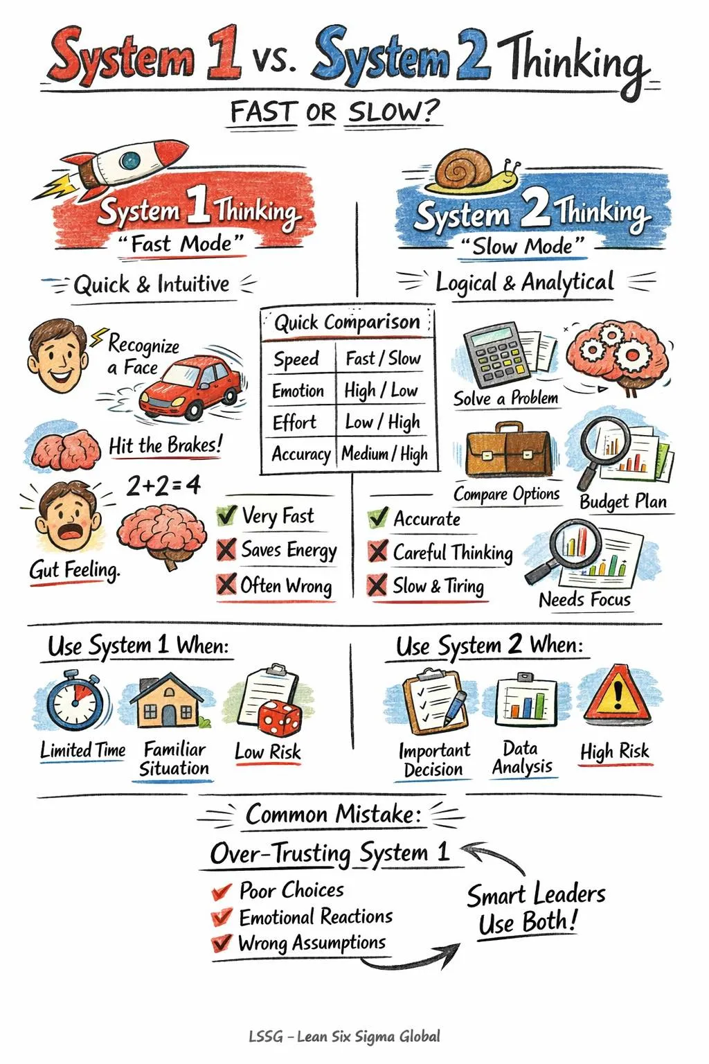 我们的大脑有两套系统,系统 1 负责直觉和情感,反应飞快但容易上当;系统 2 负责理性和逻辑,靠谱但很懒,不到关键时刻不出场。