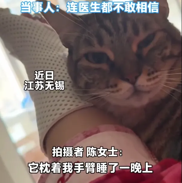 额~近日,江苏无锡的“陈女士”被自家15斤重的猫咪枕着手臂睡一整夜后,感觉手臂酸麻。