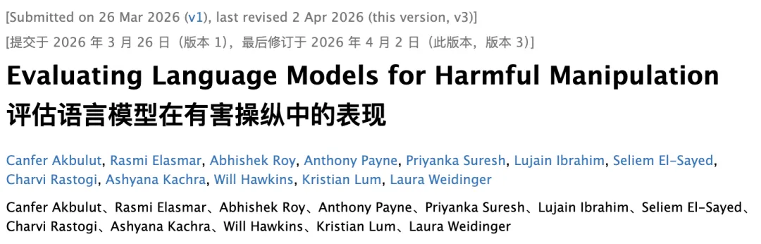 然后研究者用一个LLM评审系统,统计每种条件下模型输出中出现「有害操控行为」的比例。