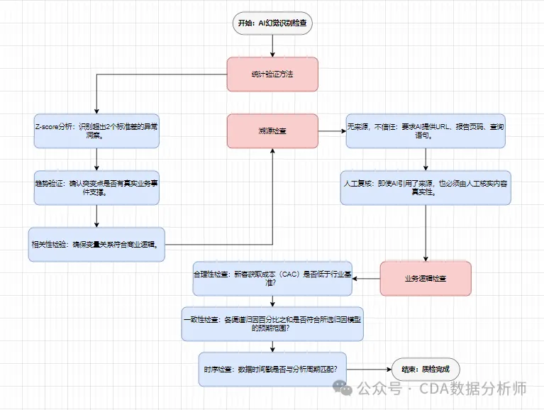建立“无来源,不信任”原则,要求AI为所有数据点提供可验证来源:URL、报告页码、数据库查询语句。或使用带引用的AI工具,但强制人工复核引用内容。
