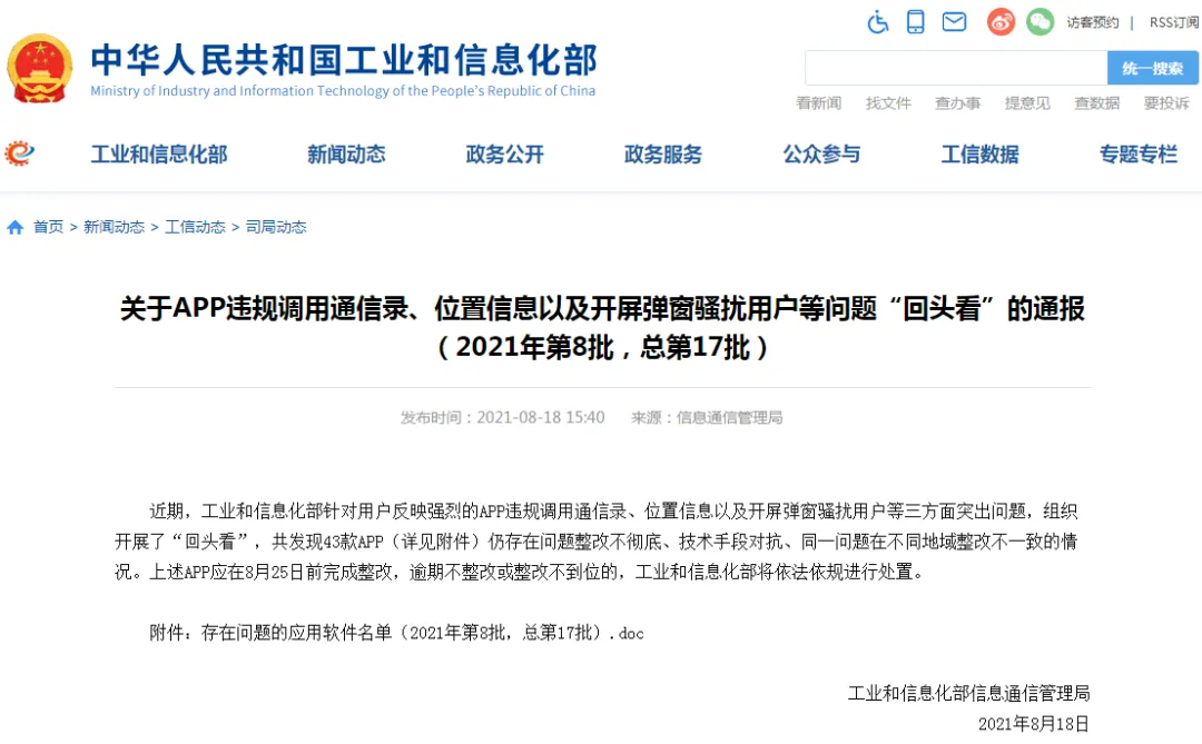要求上述APP在8月25日前完成整改,逾期不整改或整改不到位的,将依法依规进行处置。来源 | 工业和信息化部信息通信管理局