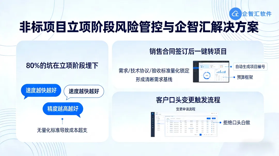 #非标自动化项目管理 #变更控制 #企智汇 #项目管理系统 #非标自动化 #项目管理软件 #变更管理 #按期交付 #成本管控 #制造业数字化转型 #ERP系统 #研发项目管理 #BOM管理 #动态WBS #需求基线 #ECN变更通知 #柔性变更管理 #项目延期 #非标设备 #制造业解决方案