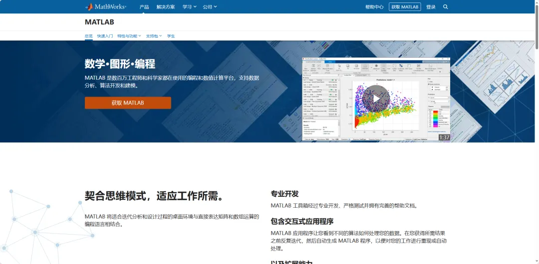 MATLAB是一款商业数学软件,用于算法开发、数据可视化、数据分析以及数值计算的高级技术计算语言和交互式环境,可以进行矩阵运算、绘制函数和数据、实现算法、创建用户界面、连接其他编程语言的程序等,主要应用于工程计算、控制设计、信号处理与通讯、图像处理、信号检测、金融建模设计与分析等领域。