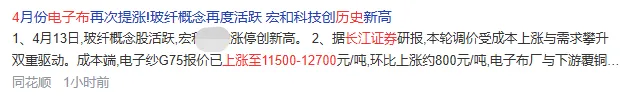 1. 电子布市场供应趋紧,价格上行(据长江证券,4月9日)