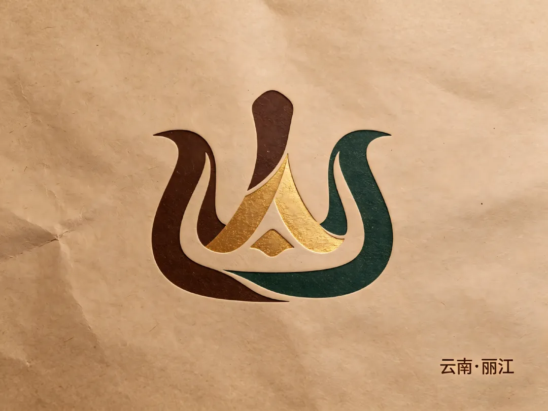 AI把东巴文的"山"字做成了一个非常简洁的logo——三角形的轮廓,但线条有竹笔那种自然的不规则感,配上深棕和金色的配色,确实像一个精品咖啡品牌会用的东西。