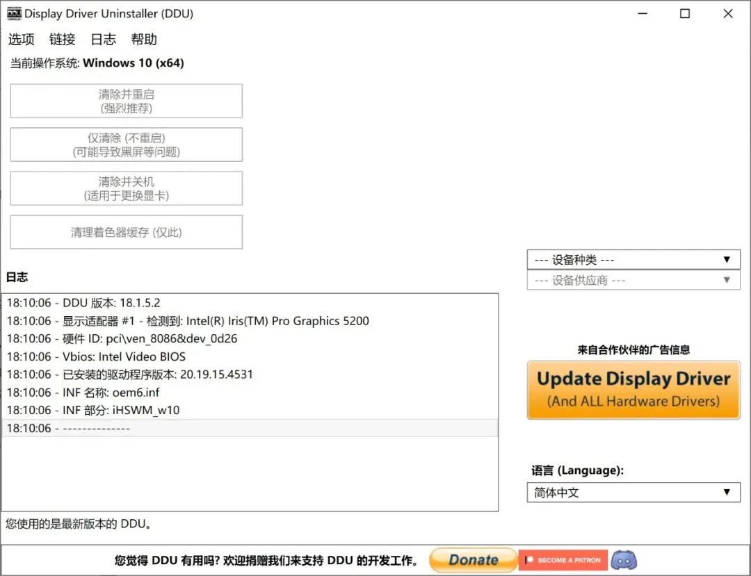 一款实用的驱动卸载工具--Display Driver Uninstaller,v18.1.5.2新版本,绿色便携版。