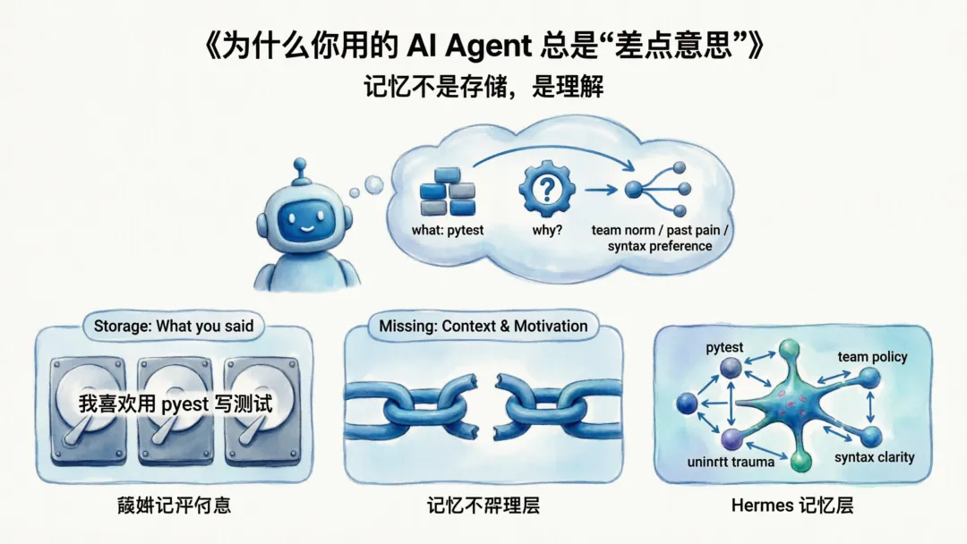 你告诉 Agent “我喜欢用 pytest 写测试”,它记下来了。下次你让它写测试,它用了 pytest。看起来不错。