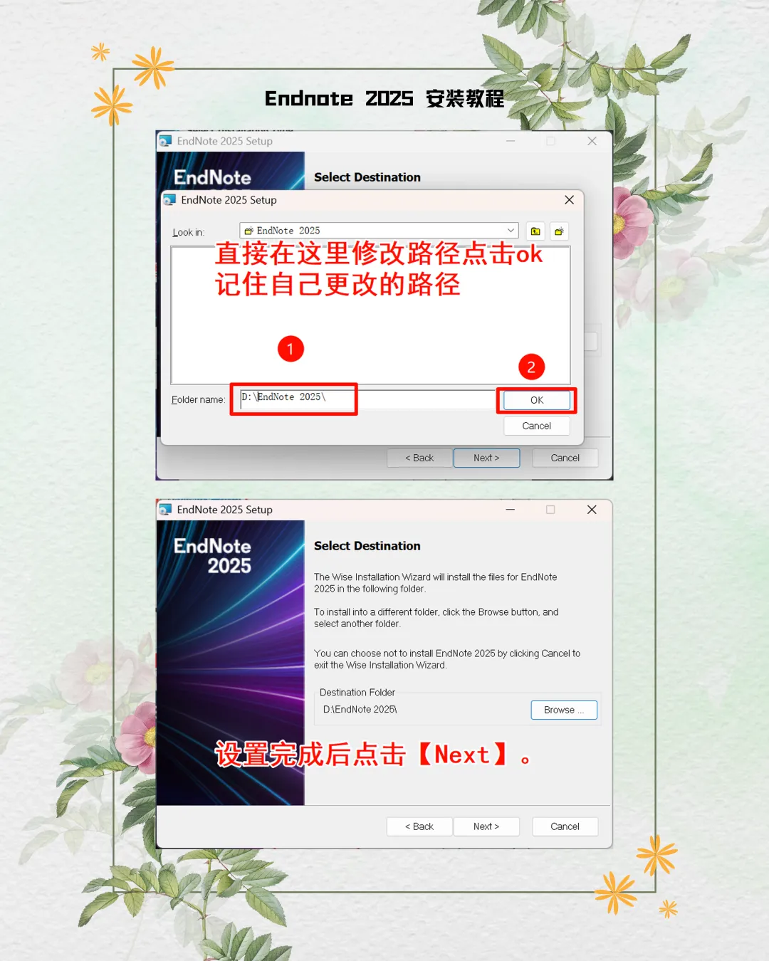 3. 路径自定义:点击 Browse 将路径起始符改为D盘。安装完成后点击 Finish。