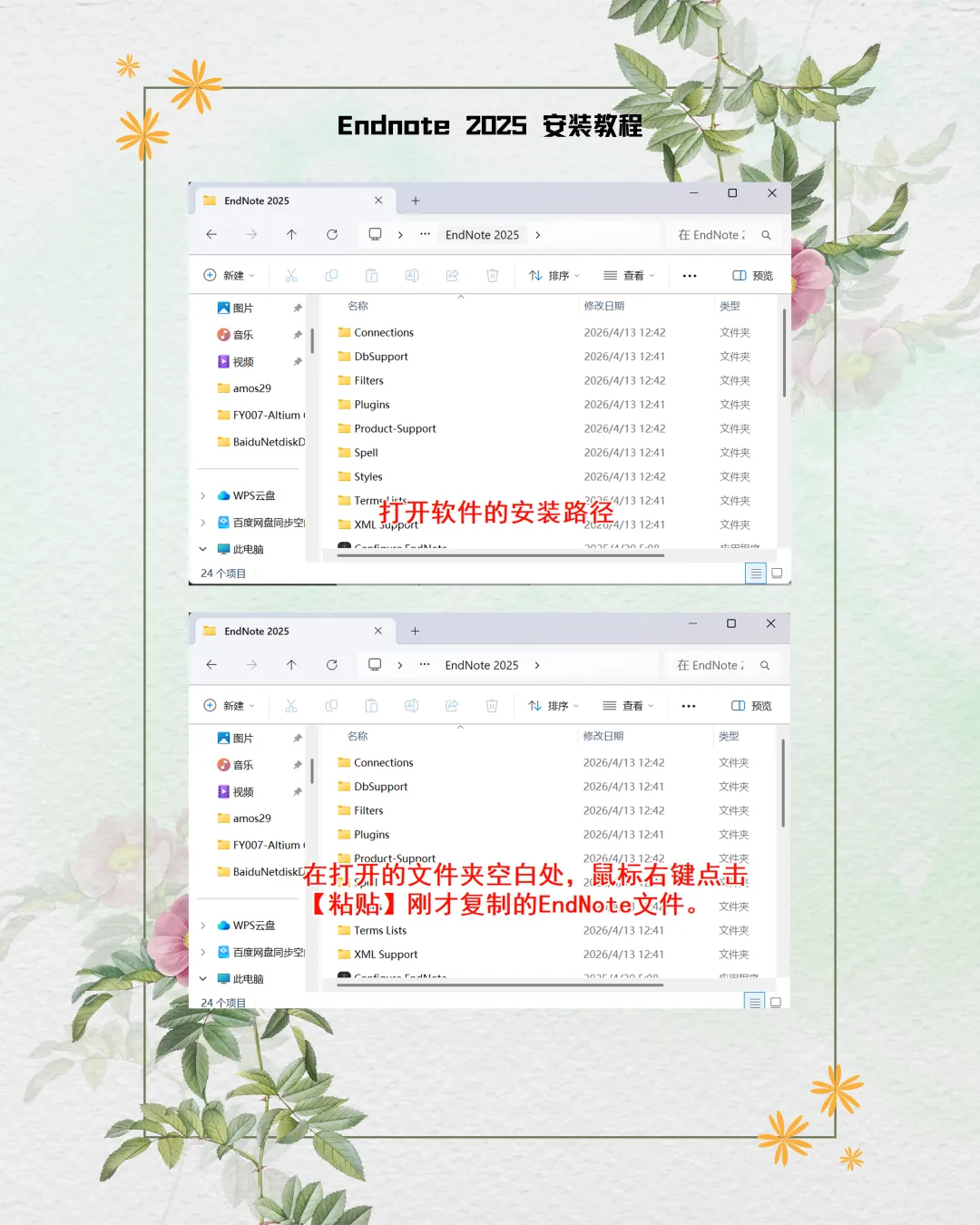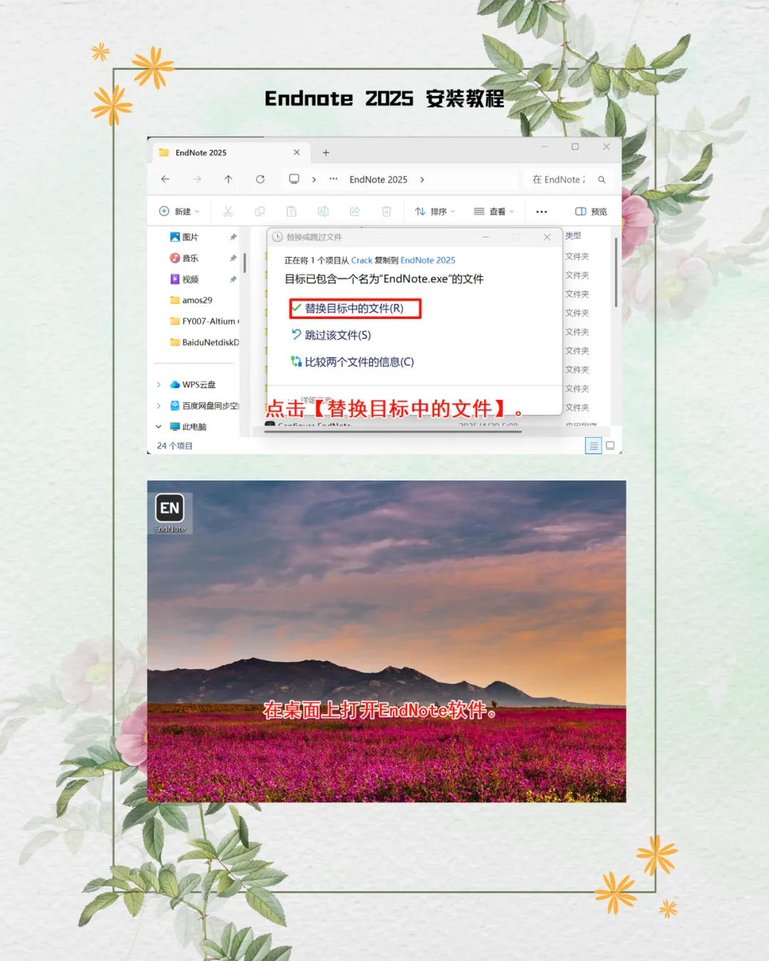 2. 替换激活:右键桌面EndNote图标 ➡ 【打开文件所在的位置】。在此粘贴并选择替换目标中的文件。
