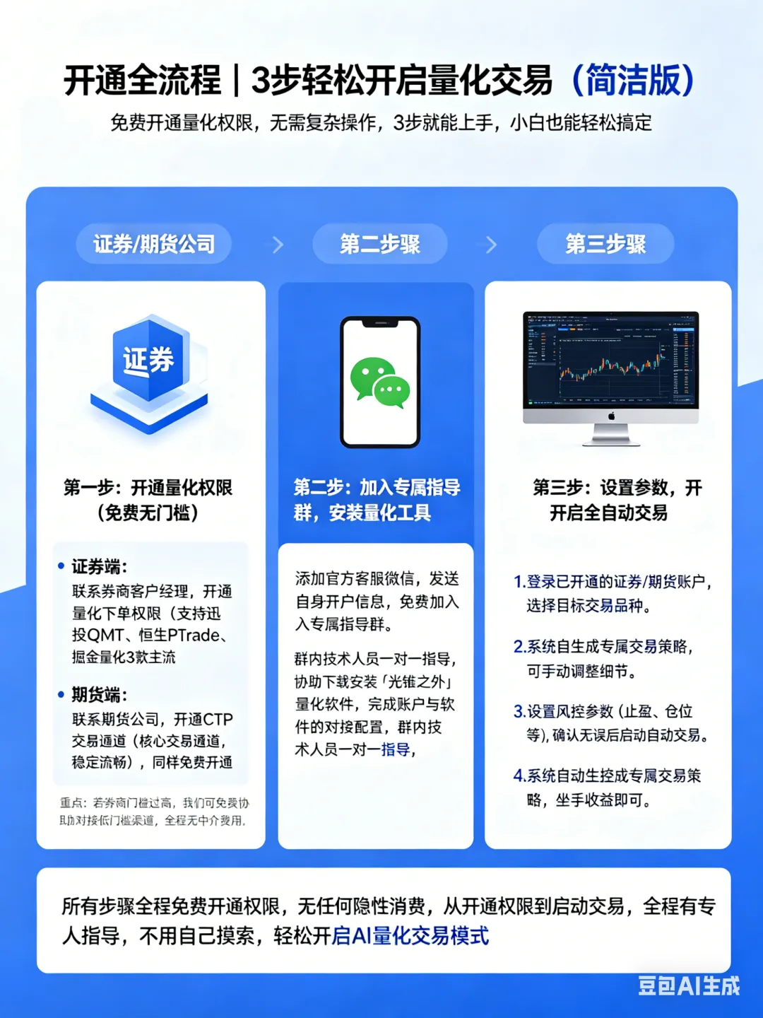 很多散户想用量化工具,却卡在“开通量化权限”这一步——其实,**所有券商、期货公司都免费提供量化下单权限开通服务**,只是门槛略有不同。下面,我们手把手教你完整的开通步骤(删除冗余步骤),全程无费用,放心操作:
