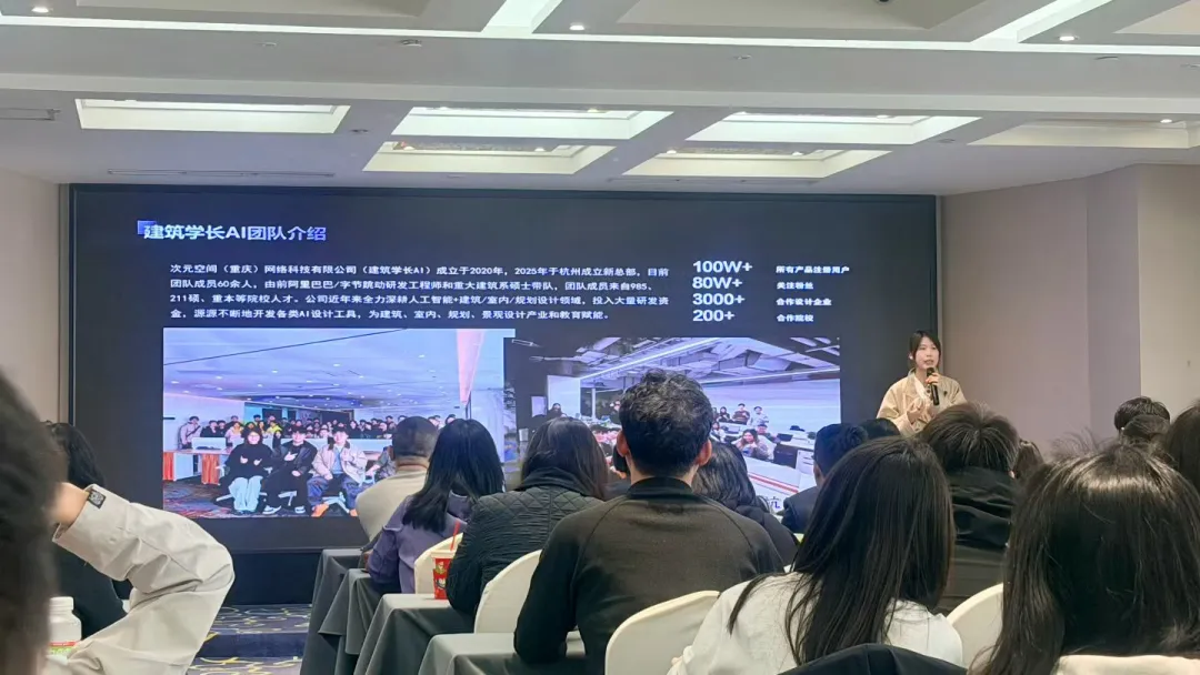 本次交流会特邀'建筑学长'AI联合创始人蒋婉琪、创作平台负责人高航担任主讲,围绕“如何用AI辅助设计—— 建筑学长AI平台在设计各阶段的应用”主题,聚焦设计全流程实战应用:从前期方案草图快速生成、概念创意推演,到中期效果图智能渲染、视觉表达提升,再到后期设计成果快速优化、细节迭代,逐一拆解操作技巧,并开展现场实操演示,让参会人员直观掌握AI工具落地方法,内容紧贴设计实践、干货满满。