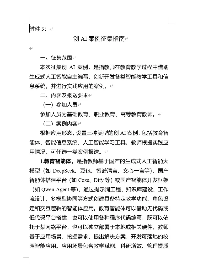 这是教育部教育技术与资源发展中心面向基础教育、职业教育、高等教育教师开展的 AI 应用案例征集活动,核心是推动人工智能和教育教学深度融合,最终会评选国家级推荐案例并进行推广。