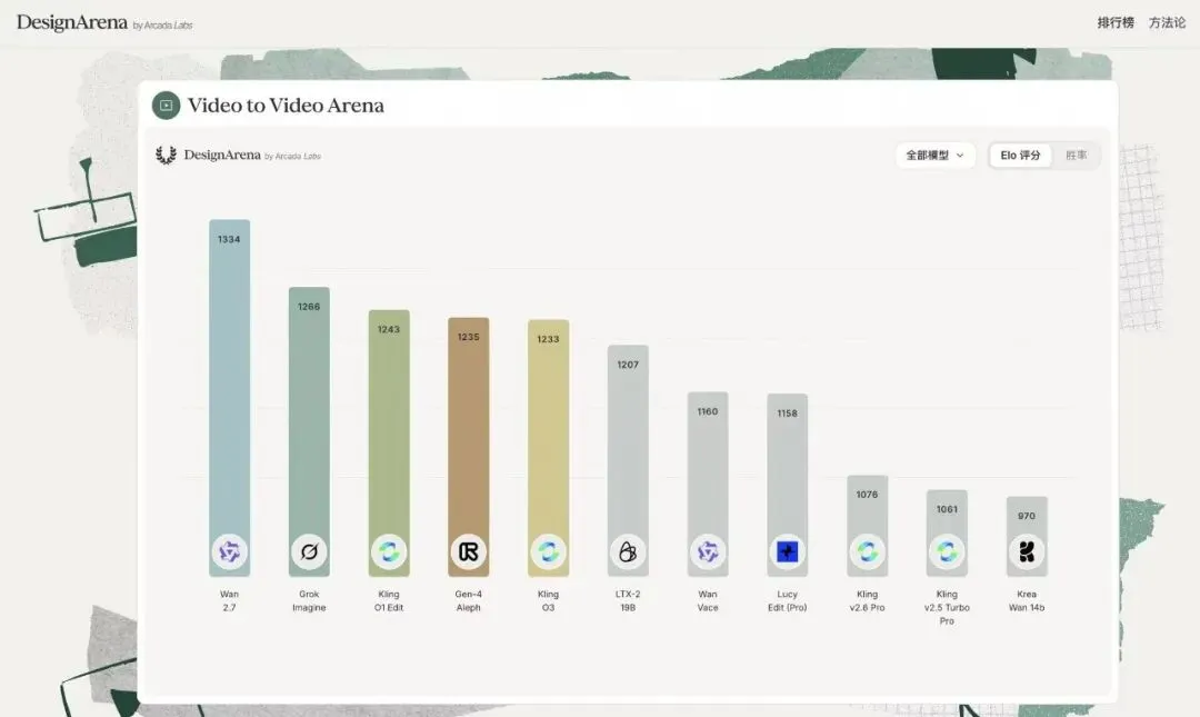 阿里通义实验室发布的视频生成大模型Wan2.7在DesignArena权威榜单中以1334 Elo评分位居第一,超越多个国际主流模型,展现出在动态画面连贯性、细节还原与创意表达上的显著优势。