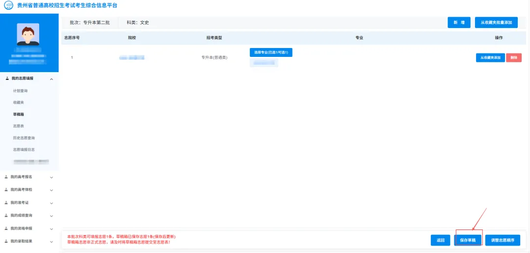 1.添加志愿草稿