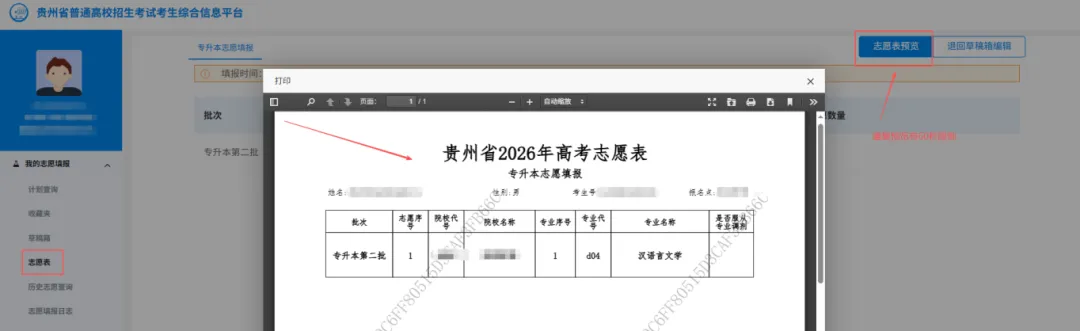 5.志愿表预览