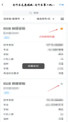 考生如想收藏某院校专业,可通过点击院校名称后★进行收藏。